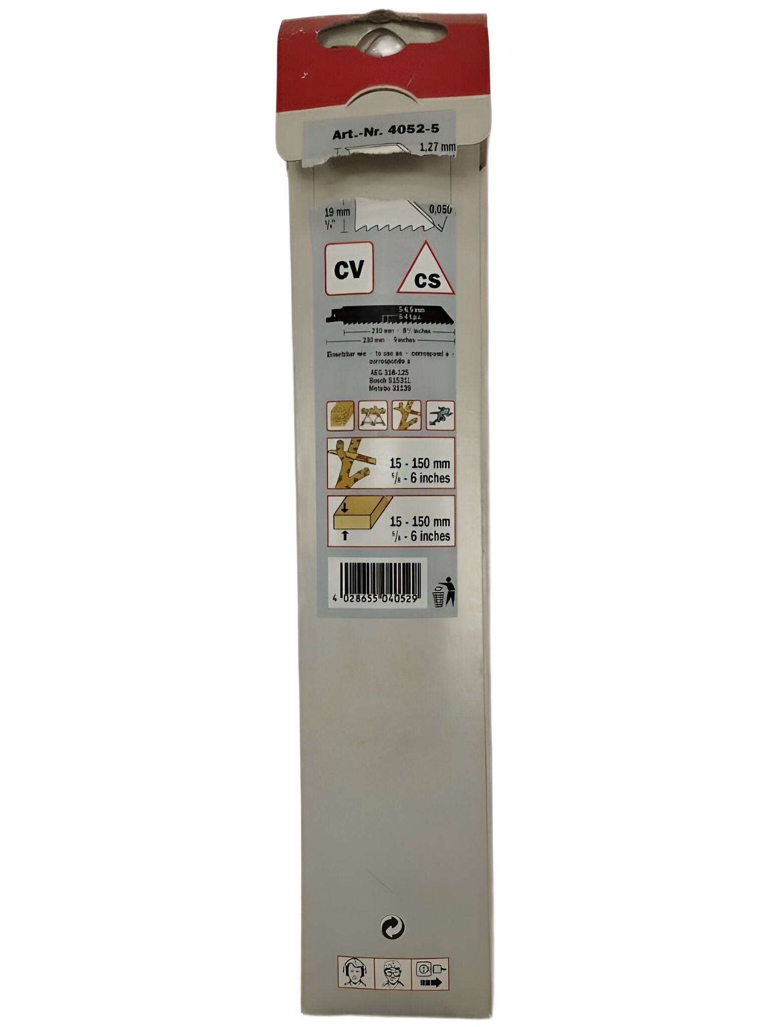 Набор пилок из 5 шт для сабельной пилы, с рабочей длинной пилки 210мм, из хром ванадиевой стали, шаг зуба 5,5мм, по древесине от 15 до 150мм, для обрезания сучков на дереве от 15 до 150мм, быстрое пиление.