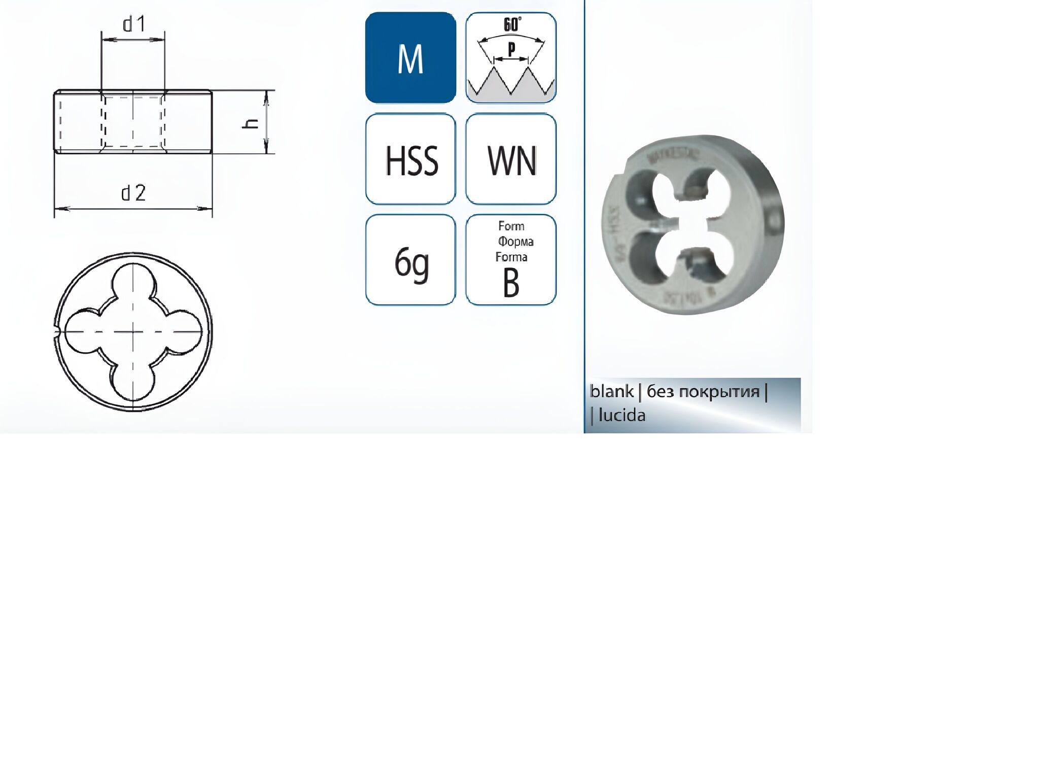 Плашка М3 квалитет 6g с шагом 0,5мм. Изготовлена в Австрии под торговой маркой Maykestag. Изготовлена из металла HSS. Подходит для нарезания резьбы по стали, цветных металлов.
